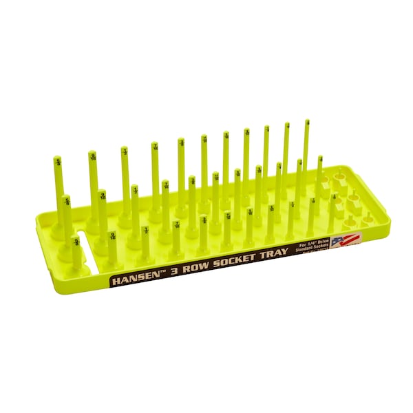 Fractional Three Row Socket Tray for 1/4" Drive Sockets, Hi-Viz Yellow