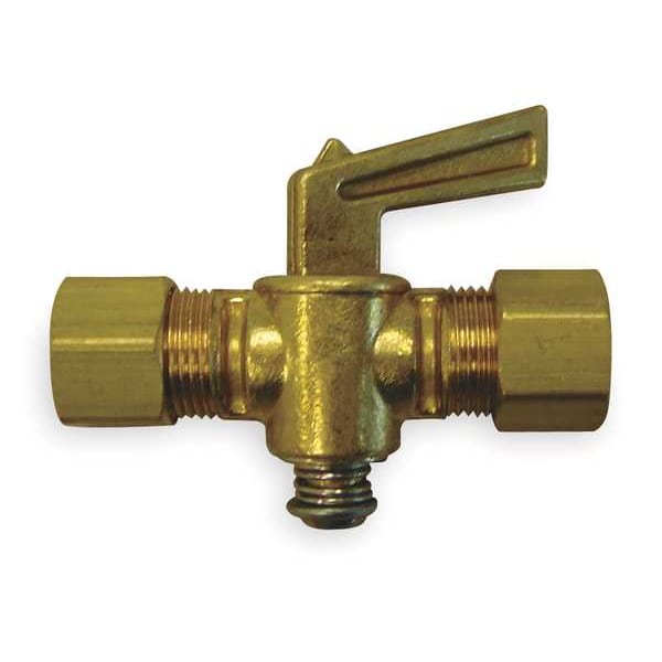 Ground Plug Valve, 2-Way, Body Material Brass, Connection Type Compression, Tube Size 3/8 in, Max. Pressure 30 psi, Temp. Range -65 Degrees To 250 Degrees F, Handle Type Lever, Overall Height 1 7/8 in, Overall Length 2.25 in, Standards ISO 9002