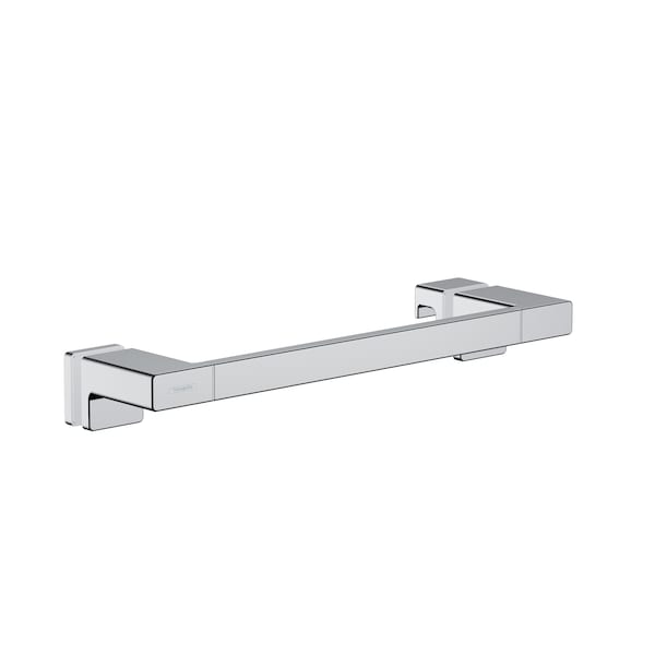 High quality shower door handle from hansgrohe in chrome With the AddStoris shower door handle from hansgrohe the bathroom is both functional and visually enhanced. It not only opens and closes the shower door reliably, but also serves as a practical towel rail. The modern and reduced design impresses with a clear, expressive design. It fits particularly well with geometric bathroom fittings, such as the hansgrohe line Metropol. Nice that the hansgrohe quality keeps what the high-quality design promises: the AddStoris shower door handle is made of metal and therefore particularly durable. This helps in the sustainable use of resources and reduces the plastic content in the environment. The surface is elaborately chrome-plated and is easy to clean. This means that the brilliant shine is maintained permanently. Easy to install. The shower door handle is placed on the door from the inside and outside and fastened with two screws. The hole spacing is approx. 13.8 in; the Diameter of the drill hole is approx 0.5 in. The glass thickness can be between 0.25-0.5 in.
