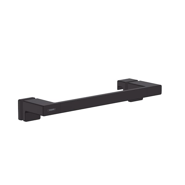 High quality shower door handle from hansgrohe in matte black With the AddStoris shower door handle from hansgrohe the bathroom is both functional and visually enhanced. It not only opens and closes the shower door reliably, but also serves as a practical towel rail. The modern and reduced design impresses with a clear, expressive design. It fits particularly well with geometric bathroom fittings, such as the hansgrohe line Metropol. Nice that the hansgrohe quality keeps what the high-quality design promises: the AddStoris shower door handle is made of metal and therefore particularly durable. This helps in the sustainable use of resources and reduces the plastic content in the environment. The matte surface in matte black is easy to clean. It corresponds to the color of the hansgrohe special surfaces for fittings (FinishPlus). So everything fits perfectly together. Easy to install. The shower door handle is placed on the door from the inside and outside and fastened with two screws. The hole spacing is approx. 13.8 in; the Diameter of the drill hole is approx 0.5 in. The glass thickness can be between 0.25-0.5 in.