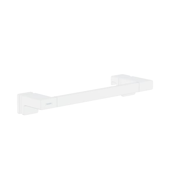 High quality shower door handle from hansgrohe in matte white With the AddStoris shower door handle from hansgrohe the bathroom is both functional and visually enhanced. It not only opens and closes the shower door reliably, but also serves as a practical towel rail. The modern and reduced design impresses with a clear, expressive design. It fits particularly well with geometric bathroom fittings, such as the hansgrohe line Metropol. Nice that the hansgrohe quality keeps what the high-quality design promises: the AddStoris shower door handle is made of metal and therefore particularly durable. This helps in the sustainable use of resources and reduces the plastic content in the environment. The matte surface in matte white is easy to clean. It corresponds to the color of the hansgrohe special surfaces for fittings (FinishPlus). So everything fits perfectly together. Easy to install. The shower door handle is placed on the door from the inside and outside and fastened with two screws. The hole spacing is approx. 13.8 in; the Diameter of the drill hole is approx 0.5 in. The glass thickness can be between 0.25-0.5 in.