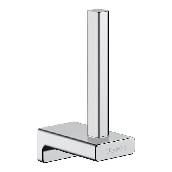 Replacement paper roll holder from hansgrohe in chrome. With the AddStoris replacement paper roll holder from hansgrohe the bathroom is both functional and visually enhanced. On the elegant holder, a replacement toilet roll is always at hand. The modern and reduced design impresses with a clear, expressive design. It fits particularly well with geometric bathroom fittings, such as the hansgrohe line Metropol. Nice that the hansgrohe quality holds up to what the high-quality design promises: the AddStoris replacement paper roll holder is made of metal and therefore particularly durable. This helps in the sustainable use of resources and reduces the plastic content in the environment. The surface is elaborately chrome-plated and is easy to clean. This means that the brilliant shine is maintained permanently. Easy to install. The replacement toilet roll holder is reliably attached to the wall with two screws. The drilling distance is 0.9 in.