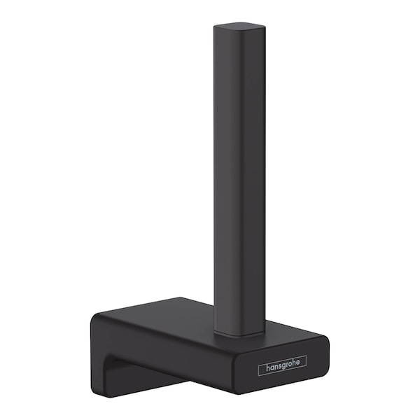 Replacement paper roll holder from hansgrohe in matte black. With the AddStoris replacement paper roll holder from hansgrohe the bathroom is both functional and visually enhanced. On the elegant holder, a replacement toilet roll is always at hand. The modern and reduced design impresses with a clear, expressive design. It fits particularly well with geometric bathroom fittings, such as the hansgrohe line Metropol. Nice that the hansgrohe quality holds up to what the high-quality design promises: the AddStoris replacement paper roll holder is made of metal and therefore particularly durable. This helps in the sustainable use of resources and reduces the plastic content in the environment. The matte black surface is easy to clean. It corresponds to the color of the hansgrohe special surfaces for fittings (FinishPlus). So everything fits perfectly together. Easy to install. The replacement toilet roll holder is reliably attached to the wall with two screws. The drilling distance is 0.9 in.