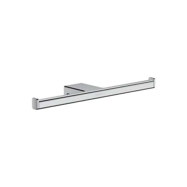 Double toilet roll holder by hansgrohe in chrome With the hansgrohe AddStoris Double Toilet Roll Holder , the bathroom is both functional and visually enhanced. The elegant holder holds two toilet paper rolls. The modern and reduced design impresses with a clear, expressive design. It fits particularly well with geometric bathroom fittings, such as the hansgrohe line Metropol. Nice that the hansgrohe quality keeps what the high-quality design promises: the AddStoris toilet roll holder is made of metal and therefore particularly durable. This helps in the sustainable use of resources and reduces the plastic content in the environment. The surface is elaborately chrome-plated and is easy to clean. This means that the brilliant shine is maintained permanently. Easy to install. The double toilet roll holder is reliably attached to the wall with two screws. The drilling distance is 0.9 in.