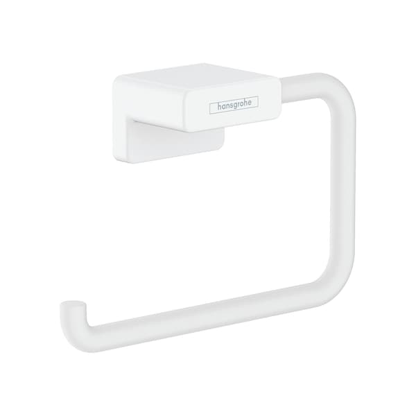 hansgrohe toilet roll holder in matte white. With the AddStoris toilet roll holder from hansgrohe the bathroom is both functional and visually enhanced. The elegant holder keeps the toilet roll always at hand. The modern and reduced design impresses with a clear, expressive design. It fits particularly well with geometric bathroom fittings, such as the hansgrohe line Metropol. Nice that the hansgrohe quality keeps what the high-quality design promises: the AddStoris toilet roll holder is made of metal and therefore particularly durable. This helps in the sustainable use of resources and reduces the plastic content in the environment. The matte white surface is easy to clean. It corresponds to the color of the hansgrohe special surfaces for fittings (FinishPlus). So everything fits perfectly together. Easy to install. The toilet roll holder is reliably attached to the wall with two screws. The drilling distance is 0.9 in.