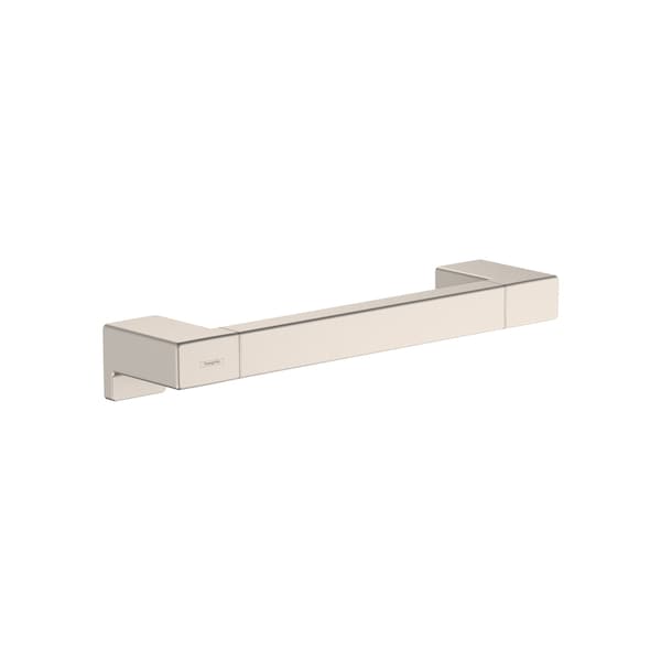Solid towel bar from hansgrohe in brushed nickel With the AddStoris towel bar from hansgrohe the bathroom is both functional and visually enhanced. The approx. 13.8 in wide bar a towel is always at hand and quickly dried. The modern and reduced design impresses with a clear, expressive design. It fits particularly well with geometric bathroom fittings, such as the hansgrohe line Metropol. Nice that the hansgrohe quality holds up to what the high-quality design promises: the AddStoris towel bar is made of metal and therefore particularly durable. This helps in the sustainable use of resources and reduces the plastic content in the environment. The brushed surface in brushed nickel is easy to clean. It corresponds to the color of the hansgrohe special surfaces for fittings (FinishPlus). So everything fits perfectly together. Easy to install. The towel bar is reliably attached to the wall by a total of four screws. The drilling distance on both sides is 1.1 in each.