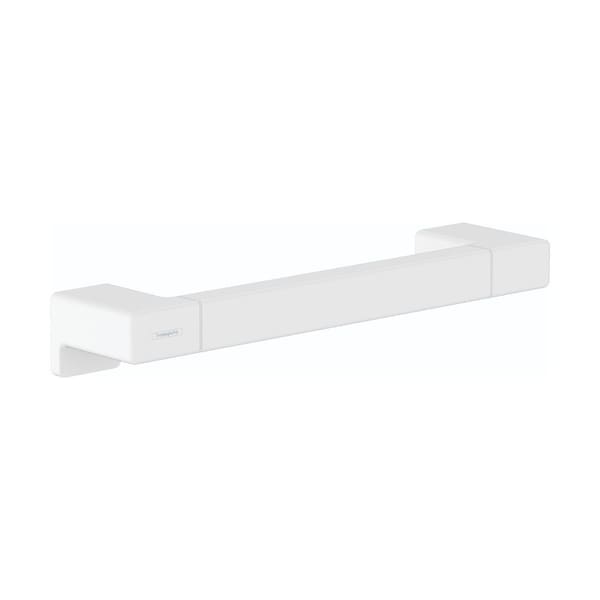 Solid towel bar from hansgrohe in matte white With the AddStoris towel bar from hansgrohe the bathroom is both functional and visually enhanced. The approx. 13.8 in wide bar a towel is always at hand and quickly dried. The modern and reduced design impresses with a clear, expressive design. It fits particularly well with geometric bathroom fittings, such as the hansgrohe line Metropol. Nice that the hansgrohe quality holds up to what the high-quality design promises: the AddStoris towel bar is made of metal and therefore particularly durable. This helps in the sustainable use of resources and reduces the plastic content in the environment. The matte surface in matte white is easy to clean. It corresponds to the color of the hansgrohe special surfaces for fittings (FinishPlus). So everything fits perfectly together. Easy to install. The towel bar is reliably attached to the wall by a total of four screws. The drilling distance on both sides is 1.1 in each.