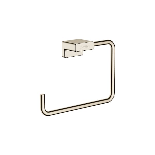 Attractive towel ring from hansgrohe in polished nickel. With the AddStoris towel ring from hansgrohe the bathroom is both functional and visually enhanced. Thanks to the holder open on one side, the towel can be hung comfortably. The straight shape also offers the advantage that the towel does not slip together and therefore dries faster. The modern and reduced design impresses with a clear, expressive design. It fits particularly well with geometric bathroom fittings, such as the hansgrohe line Metropol. Nice that the hansgrohe quality keeps what the high-quality design promises: the AddStoris towel ring is made of metal and therefore particularly durable. This helps in the sustainable use of resources and reduces the plastic content in the environment. The polished nickel surface is easy to clean. It corresponds to the color of the hansgrohe special surfaces for fittings (FinishPlus). So everything fits perfectly together. Easy to install. The towel ring is reliably attached to the wall with two screws. The drilling distance is 0.9 in.