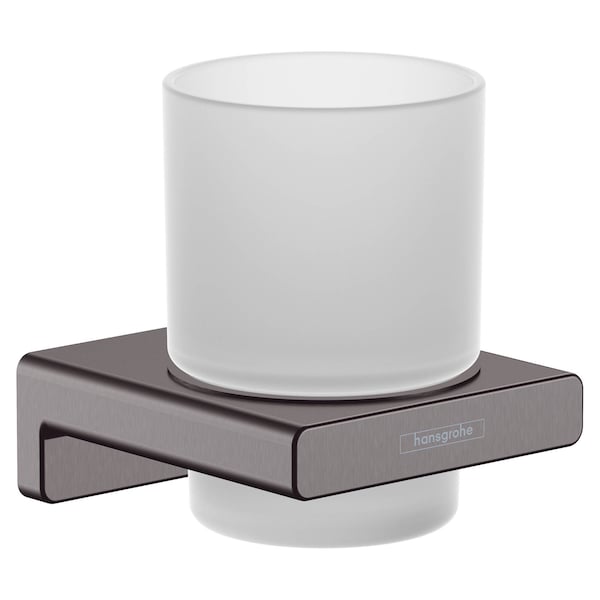 Elegant glass toothbrush holder with wall mount in brushed black chrome. With the AddStoris toothbrush cup from hansgrohe the bathroom is both functional and visually enhanced. The wall-mounted frosted glass mug brings a touch of luxury to the bathroom and creates order around the sink. The modern and reduced design impresses with a clear, expressive design. It fits particularly well with geometric bathroom fittings, such as the hansgrohe line Metropol. Nice that the hansgrohe quality keeps what the high-quality design promises: the AddStoris toothbrush cup is made of glass (3.7 x 2.7 in). This helps in the sustainable use of resources and reduces the plastic content in the environment. The metal surface of the wall mount in brushed black chrome is easy to clean. It corresponds to the color of the hansgrohe special surfaces for fittings (FinishPlus). So everything fits perfectly together. Easy to install. The wall mount is reliably attached to the wall with two screws. The drilling distance is 0.9 in.
