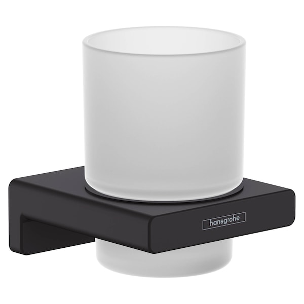Elegant glass toothbrush holder with wall mount in matte black. With the AddStoris toothbrush cup from hansgrohe the bathroom is both functional and visually enhanced. The wall-mounted frosted glass mug brings a touch of luxury to the bathroom and creates order around the sink. The modern and reduced design impresses with a clear, expressive design. It fits particularly well with geometric bathroom fittings, such as the hansgrohe line Metropol. Nice that the hansgrohe quality keeps what the high-quality design promises: the AddStoris toothbrush cup is made of glass (3.7 x 2.7 in). This helps in the sustainable use of resources and reduces the plastic content in the environment. The metal surface of the wall mount in matte black is easy to clean. It corresponds to the color of the hansgrohe special surfaces for fittings (FinishPlus). So everything fits perfectly together. Easy to install. The wall mount is reliably attached to the wall with two screws. The drilling distance is 0.9 in.