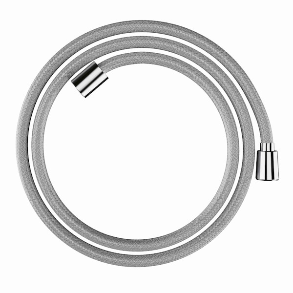 Effortless showering: Designflex textile shower hose from hansgrohe in chrome (63-inch). Experience a completely new showering sensation with the Designflex textile shower hose. Because the world exclusive from hansgrohe is significantly lighter than a comparable hansgrohe shower hose. Designflex consists of multi-colored, braided yarns that offer even more freedom of movement and flexibility. When showering, the cotton-like material pampers you with a pleasantly warm and soft feeling on the skin.The multi-colored textile mesh fascinates with an individual design that perfectly matches the colors of the FinishPlus finishes of hansgrohe showers and mixers. Together, they create a cozy ambience and transform your shower into an oasis of well-being. hansgrohe Designflex - the magic is in the detail. A sense of well-being: The yarns used are made from recycled PET and thus help protect the environment. Known and proven in outdoor and water sports: the high-density braid is waterproof, dirt-repellent and extremely long-lasting. Extra clean: the shower hose is easy to clean and is even dishwasher safe up to 140 °F. Universally suitable: hansgrohe Designflex fits every shower head and every normal water connection (1/2 inch)