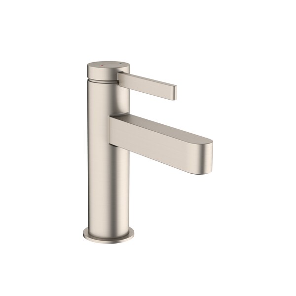 Modern single-hole faucet in brushed nickel for a puristic bathroom ambience - includes push-open drain The Finoris 100 single-hole bathroom faucet in brushed nickel with push-open drain assembly from hansgrohe interprets the classic operating concept surprisingly new and modern via a slim single handle. The slim, geometric shapes fit particularly well into a puristic bathroom ambience. There, the faucet sets an expressive accent with its easy-to-clean surface in brushed nickel. The high quality faucet keeps what the elegant design promises. The single handle controls a high-quality ceramic valve from hansgrohe. The amount and temperature of the water are reliably adjusted. The quiet and crystal clear laminar spray continues the slim fitting body and forms a harmonious unit. Thanks to hansgrohe EcoRight technology, the faucet helps save water. It uses a maximum of 1.2 GPM - even at high water pressure. The sink is the heart of the bathroom. Here, the high spout simplifies with approx. 4 in. distance from the aink for many everyday tasks (ComfortZone 100). Whether it is filling large vessels or washing hair quickly under the faucet, the Finoris single-hole bathroom faucet 100 supports confidently. Push-open drain included. The included push-open drain fitting is operated without a pull rod. A short finger pressure on the drain plug opens or closes the valve. Without the pull rod on the back, the faucet looks even more puristic.