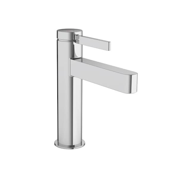 Modern single-hole faucet in chrome for a puristic bathroom ambience - includes push-open drain The Finoris 110 single-hole bathroom faucet in chrome with push-open drain assembly from hansgrohe interprets the classic operating concept surprisingly new and modern via a slim single handle. The slim, geometric shapes fit particularly well into a puristic bathroom ambience. There, the faucet sets an expressive accent with its Easy-to-clean surface in chrome. The high quality faucet keeps what the Elegant design promises. The single handle controls a high-quality ceramic valve from hansgrohe. The amount and temperature of the water are reliably adjusted. The quiet and crystal clear laminar spray continues the slim fitting body and forms a harmonious unit. Thanks to hansgrohe EcoRight technology, the faucet helps save water. It uses a maximum of 1.2 GPM - even at high water pressure. The sink is the heart of the bathroom. Here, the high spout simplifies with approx. 4 in. distance from the aink for many everyday tasks (ComfortZone 110). Whether it is filling large vessels or washing hair quickly under the faucet, the Finoris single-hole bathroom faucet 110 supports confidently. Push-open drain included. The included push-open drain fitting is operated without a pull rod. A short finger pressure on the drain plug opens or closes the valve. Without the pull rod on the back, the faucet looks even more puristic.