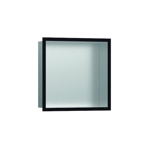 Shelf as a design highlight: hansgrohe XtraStoris individual wall niche (12 x 12 x 4 in) with matte black-colored frame. The XtraStoris individual wall niche 12 x 12 x 4 in with designer frame in matte black from hansgrohe is more than just a highly functional shelf for the shower area. In fact, the brushed stainless steel body in combination with the matte black-colored frame will transform your wall niche into an absolute design highlight in a modern bathroom setting. The shelf solution for showers or bathrooms is perfectly matched to hansgrohe FinishPlus products and blends in seamlessly with the room design. The result? An exclusive, seamless bathroom design. With a size of 12 x 12 x 4 in, the shelf offers extra storage space for personal care products. At the same time, the wall-integrated installation ensures more elbow room in the shower. Included in the box is the brushed stainless steel body and a water-tight installation set especially designed for the wet area, including sealing fleece. This makes it easy to install and safe to use. Quality from hansgrohe: The surface of the body and frame is easy to clean and retains its beauty for longer.