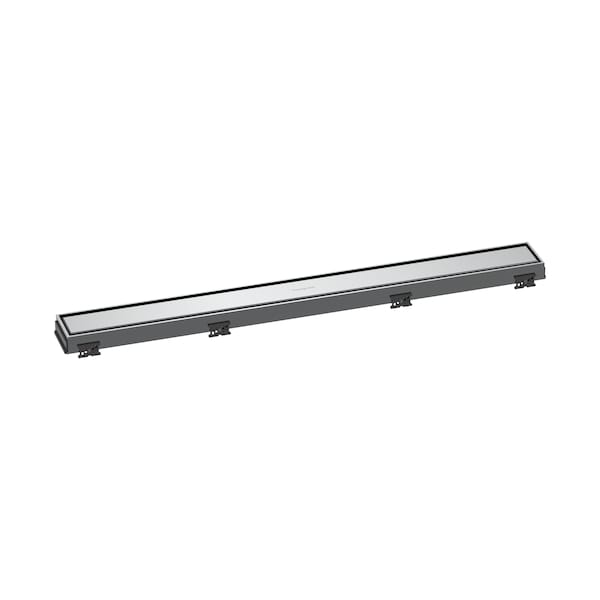 The RainDrain Match 27 5/8" drain trim (finish set) in chrome from hansgrohe is a flexible drainage solution for installation flush with the back wall or freestanding in the shower area. With its chrome surface finish, the drain trim is suitable for modern as well as classic bathroom designs. Alternatively, the channel can be tiled at the back also (max. tile thickness 18 mm). The vertically adjustable frame offers flexibility in the drain barrier also: so the system can be adjusted to the height of the tiles - for floor-level installation without trip hazard. The result meets the requirements of a barrier-free shower area. The innovative high-tech silicone membrane also ensure that hair and dirt do not get stuck. This helps prevent annoying blockages in the drain. It is easy: They are installed on a complete set with pre-assembled sealing fleece (sold separately).