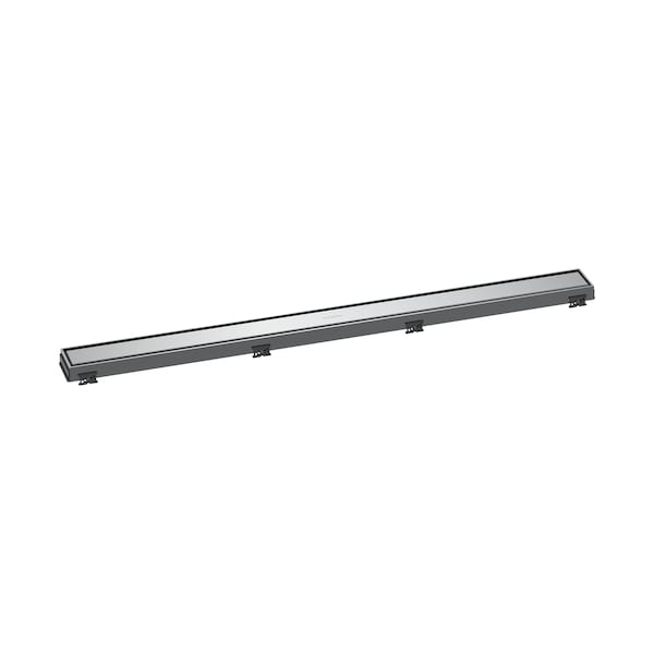 The RainDrain Match 35 1/4" drain trim (finish set) in chrome from hansgrohe is a flexible drainage solution for installation flush with the back wall or freestanding in the shower area. With its chrome surface finish, the drain trim is suitable for modern as well as classic bathroom designs. Alternatively, the channel can be tiled at the back also (max. tile thickness 18 mm). The vertically adjustable frame offers flexibility in the drain barrier also: so the system can be adjusted to the height of the tiles - for floor-level installation without trip hazard. The result meets the requirements of a barrier-free shower area. The innovative high-tech silicone membrane also ensure that hair and dirt do not get stuck. This helps prevent annoying blockages in the drain. It is easy: They are installed on a complete set with pre-assembled sealing fleece (sold separately).