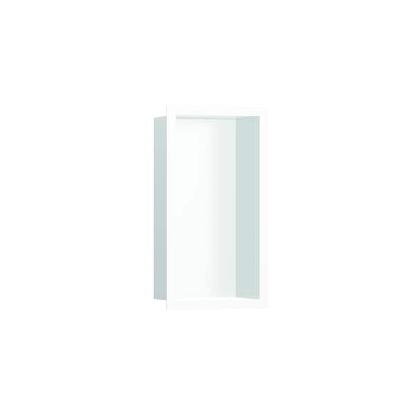 Shelf as a design highlight: hansgrohe XtraStoris individual wall niche (12 x 6 x 4 in) with matte white-colored frame. The XtraStoris individual wall niche 12 x 6 x 4 in with designer frame in matte white from hansgrohe is more than just a highly functional shelf for the shower area. In fact, the brushed stainless steel body in combination with the matte white-colored frame will transform your wall niche into an absolute design highlight in a modern bathroom setting. The shelf solution for showers or bathrooms is perfectly matched to hansgrohe FinishPlus products and blends in seamlessly with the room design. The result? An exclusive, seamless bathroom design. With a size of 12 x 6 x 4 in, the shelf offers extra storage space for personal care products. At the same time, the wall-integrated installation ensures more elbow room in the shower. Included in the box is the brushed stainless steel body and a water-tight installation set especially designed for the wet area, including sealing fleece. This makes it easy to install and safe to use. Quality from hansgrohe: The surface of the body and frame is easy to clean and retains its beauty for longer.