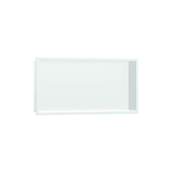 Design shelf for the wet area: hansgrohe XtraStoris original wall niche in matte white with integrated frame The XtraStoris original wall niche 12 x 24 x 4 in in matte white from hansgrohe is your modern shelving solution for that perfectly contemporary shower area. At a width of 6 in, the shelf offers extra space for personal care products. At the same time, the wall-integrated installation ensures more elbow room in the shower. The matte white finish gives the wall niche a unique look. In combination with its frame, which is seamlessly curved from the high-quality stainless steel body, the shelf becomes a formative design element in the bathroom: as an expressive contrasting element or ideal companion for hansgrohe FinishPlus products - for that uniform bathroom design. The matte white body with integrated frame and a waterproof installation and sealing set designed specifically for the shower area are included in the box. This makes it easy and safe to install. The matte white finish is easy to clean and retains its beauty permanently.
