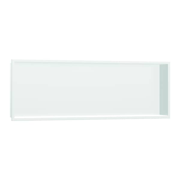 Wide design shelf for the wet area: hansgrohe XtraStoris original wall niche in matte white with integrated frame XtraStoris original wall niche 12 x 36 x 4 in in matte black from hansgrohe is your modern shelving solution for that perfectly contemporary wet area. With extra generous dimensions and a width of 36 in, the shelf offers plenty of space for personal care products. At the same time, the wall-integrated installation ensures more elbow room in the shower. The matte white finish gives the wall niche a unique look. In combination with its frame, which is seamlessly curved from the high-quality stainless steel body, the shelf becomes a formative design element in the bathroom: as an expressive contrasting element or ideal companion for hansgrohe FinishPlus products - for that uniform bathroom design. The matte white body with integrated frame and a waterproof installation and sealing set designed specifically for the shower area are included in the box. This makes it easy and safe to install. The matte white finish is easy to clean and retains its beauty permanently.