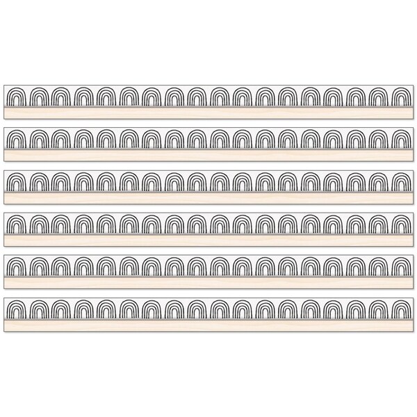 Add a rainbow of style to your learning space using Carson Dellosa Creatively Inspired Boho Rainbow Bulletin Board Borders-perfect for bulletin board, white board, cork board, and other rainbow classroom decor. Each neutral classroom borders set includes 12 strips of straight, white bulletin border with black rainbows and a light wood to add to any muted colors classroom theme or boho neutral classroom decor. Boho rainbow classroom borders are a great addition to year-round party, black board, locker, and desk decor, office decor, as well as St. Patrick's Day or spring and summer bulletin board decorations. Each strip of bulletin board border measures 3' x 3 for a total of 36 feet per pack for door, cubby, chalkboard, and wall decor that compliments a muted color classroom theme and other black and white decor or boho rainbow classroom decor. Sold as 6 packs for a total of 72 strips 432 feet.The Creatively Inspired collection, designed by Stephanie and Loreal of @HappilyEverElementary, partnered with Carson Dellosa to help create a vibrant, positive, and creative environment that inspires students to learn.