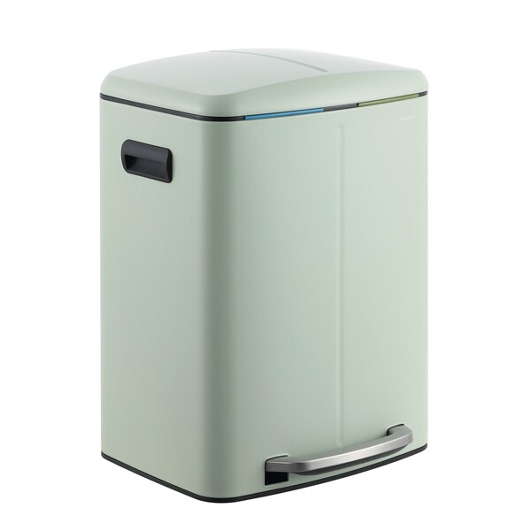 Marco Rectangular 10.6-Gallon Double Bucket Trash Can with Soft-Close Lid, Pistachio Gelato
