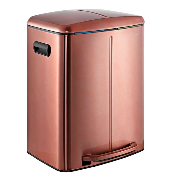 Marco Rectangular 10.6-Gallon Double Bucket Trash Can with Soft-Close Lid, Rose Gold