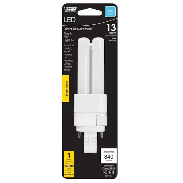 Bright White 13W Equivalence PL GX23-2 LED Light Bulb
