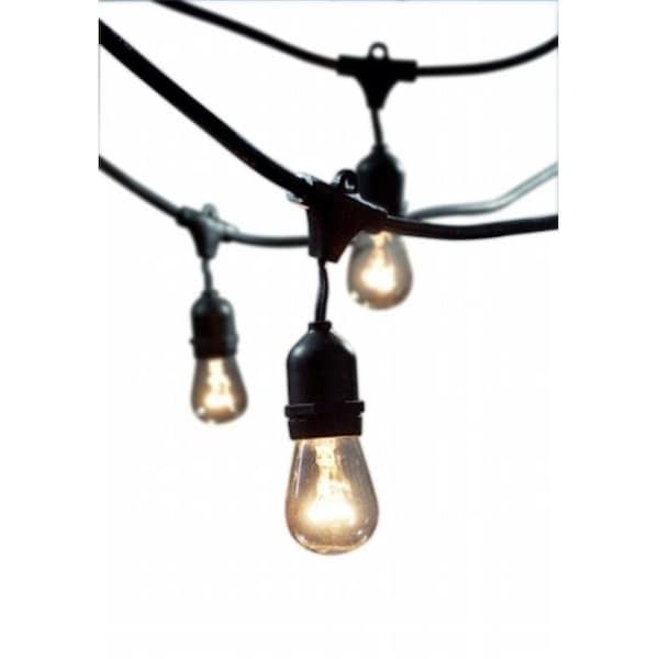 's stylish string light fixture is the perfect way to enhance any outdoor landscape. This 48' string is UL approved for outdoor use and features 15 medium (E26) base sockets. Included in the S14 kit are 15pcs 11-watt incadescent S14 bulbs. Able to string up to 4 sets together with a 1500 wattage max for the entire line. Included in the box: 1 - 48 foot long UL approved outdoor string, 15pcs 11S14C bulb Perfect for patio lighting, gazebos, porches, outdoor events, parties, and restaurants/bars Commercial grade UL rated string light can withstand the wear and tear of outdoor use. 1,500 Max watts, Medium (E26) Base, voltage 120Dimensions: Maximum Overall Length 48 ft. cord with 3 ft. spacing between each socket