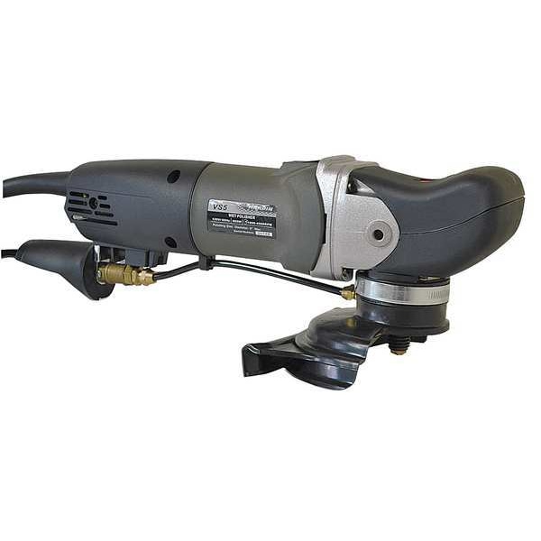 Wet Polisher, Product Type Wet Polisher, Polishing Motion Rotary, Maximum Disc Diameter 5 in, Abrasive Mount Type Threaded Shank, Grip Type Right Angle with Front Grip, Maximum Disc Speed 4,500 RPM, Speed Settings Variable, Number of Pads Included 0, Number of Abrasives Included 0, Switch Type Slide, Voltage 120 V, Includes Gearbox Cover, Ground Fault Circuit Interrupter, Owner's Manual, (2) Shaft Wrenches, Side Handle, Water Shroud, Cord Length 6 ft, Current 8 A