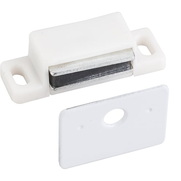 15 lb. White Single Magnetic Catch with Polished White Strike and Screws