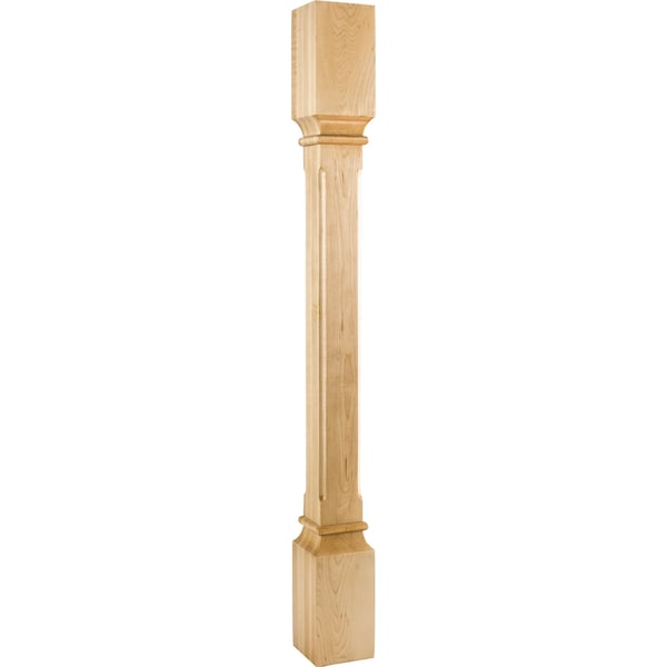 Fluted corners give this Cherry post a subtle nod to this popular design element. The carved flutes on each corner help elongate this sturdy column post with a graceful flow. The subtly carved bullnose details provide a delicate separation from end to end. This hardwood post can complete a furniture piece as a table leg, island end, or stair rail base. The possibilities are nearly infinite. Overall measurements: 3-1/2" W x 3-1/2" D x 35-1/2" H. **Photo not species specific**