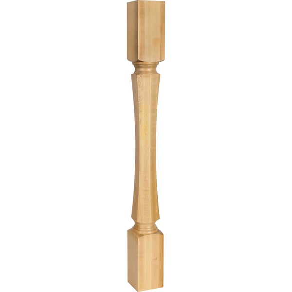 A squared block sits atop a carved ogee edge spool that transitions into a unique concave hexagonal column. This design is ideal to accent a modern space. This Hard Maple post can complete a furniture piece as a table leg, island end, or stair rail base. The possibilities are nearly infinite. Overall measurements: 3-1/2" W x 3-1/2" D x 35-1/2" H. **Photo not species specific**