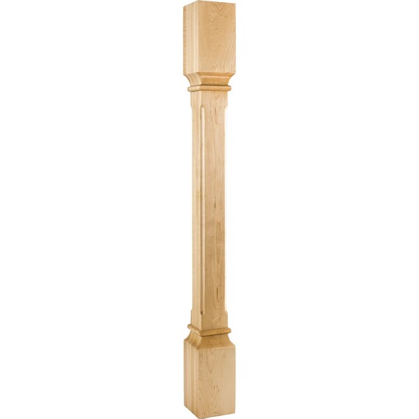 Fluted corners give this White Birch post a subtle nod to this popular design element. The carved flutes on each corner help elongate this sturdy column post with a graceful flow. The subtly carved bullnose details provide a delicate separation from end to end. This hardwood post can complete a furniture piece as a table leg, island end, or stair rail base. The possibilities are nearly infinite. Overall measurements: 3-1/2" W x 3-1/2" D x 35-1/2" H. **Photo not species specific**
