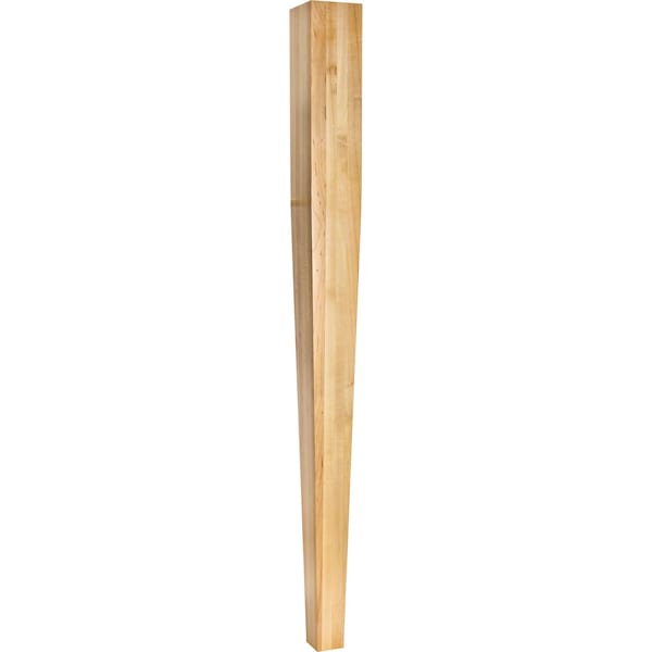 Perfectly square, this post is the epitome of contemporary design. Unornamented, sleek straight edges taper all the way to the base to make up the entirety of this post. This Maple post can complete a furniture piece as a table leg, island end, or stair rail base. The possibilities are nearly infinite. Overall measurements: 3-1/2" W x 3-1/2" D x 42" H. **Photo not species specific**