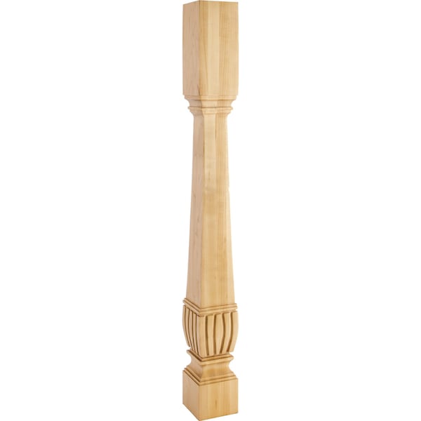 A squared top begins a taper down into vertically curved reed detail. This Cherry post boasts a stepped edge onto the squared base. The carved rectilinear features give this post a classic characteristic of the Arts & Crafts movement. This hardwood post can complete a furniture piece as a table leg, island end, or stair rail base. The possibilities are nearly infinite. Overall measurements: 3-3/4" W x 3-3/4" D x 35-1/2" H. **Photo not species specific**