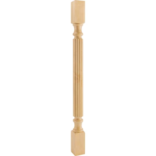A smoothly carved reed design wraps around the entire post. It's supported by 3" x 3" square ends and coved bullnose transitions, giving the post versatility. This hardwood post can complete a furniture piece as a table leg, island end, or stair rail base. The possibilities are nearly infinite. Overall measurements: 3" W x 3" D x 42" H. **Photo not species specific**