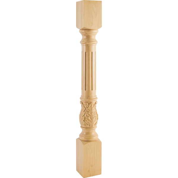 Acanthus is the archetype of opulent design elements. Incorporating Acanthus elements into a room adds an element of grandeur that's unparalleled. The Acanthus details are hand-carved above the sturdy square base and sit below carved flutes. Ogee details are prominent for extra flair. This Cherry post can complete a furniture piece as a table leg, island end, or stair rail base. The possibilities are nearly infinite. Overall measurements: 4" W x 4" D x 35-1/2" H. © Hardware Resources **Photo not species specific**