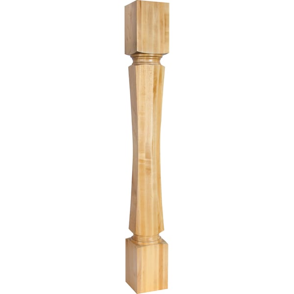 A squared block sits atop a carved ogee edge spool that transitions into a unique concave hexagonal column. This design is ideal to accent a modern space. This Hard Maple post can complete a furniture piece as a table leg, island end, or stair rail base. The possibilities are nearly infinite. Overall measurements: 5" W x 5" D x 42" H. **Photo not species specific**