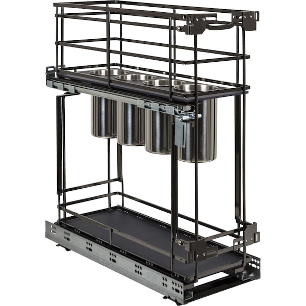 8" Black Nickel STORAGE WITH STYLE Metal "No Wiggle" Soft-close Utensil Base Pullout
