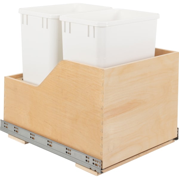 Dbl 35 Quart Wood Bottom-Mount Soft-Close Trashcan Rollout For Hinged Doors, Includes 2 White Cans
