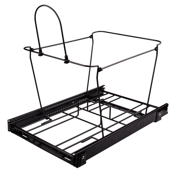 Save room on the kitchen floor by tucking away trash cans in a cabinet with our double 35 qt black wire trashcan pullout. Simple wire construction assembles in minutes and installs with just four screws to the bottom of the cabinet. Slides out on 100 lb rated full-extension slides. Comes with a wire handle for hinged door applications. Trash can and lids are sold separately as well as an optional door-mounting kit. Pullout fits in a 15" cabinet opening.