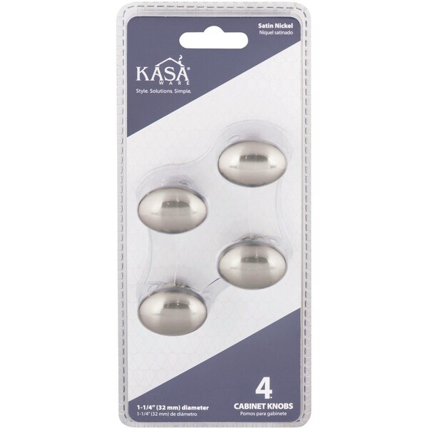 KasaWare 1-1/4'' Dia. Satin Nickel Cabinet Knob, 4PK