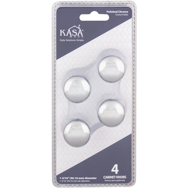 KasaWare 1-3/16'' Dia. Polished Chrome Cabinet Knob, 4PK