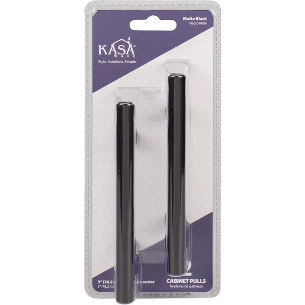 KasaWare 136 mm, 5-3/8'' L. Matte Black 3'' Center-to-Center Cabinet Pull, 2PK