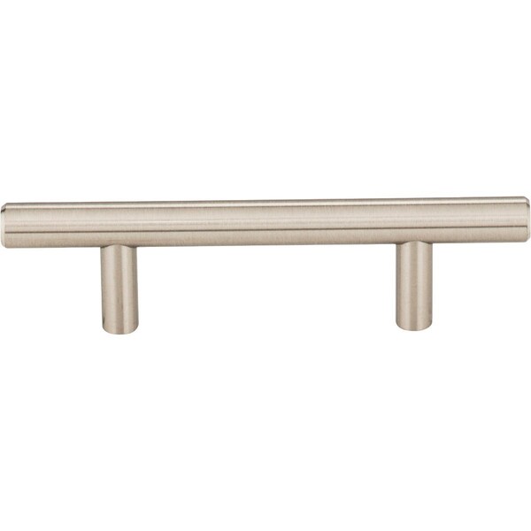 5 In. overall steel bar Cabinet Pulls (Drawer Handle) with Beveled Ends. Holes are 3 In. center-to-center. 7/16 In. Diameter. Packaged with 8/32 In. x 1 In. and 1-3/4 In. breakaway screws. Satin Nickel Finish.