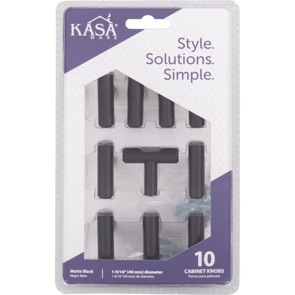 KasaWare 7/16'' Diameter Matte Black Cabinet Knob, 10PK