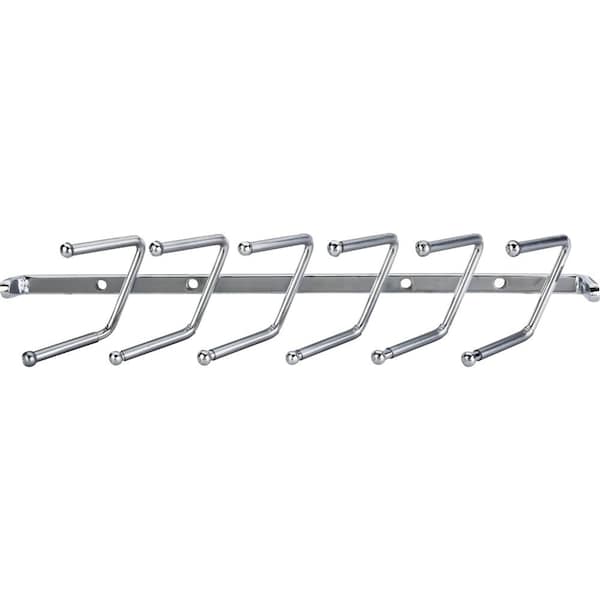 Great for adding additional hanging storage in tight spaces. Simple way to organize ties, belts, scarves, or even jewelry. Mounts easily with included screws. Polished Chrome finish.