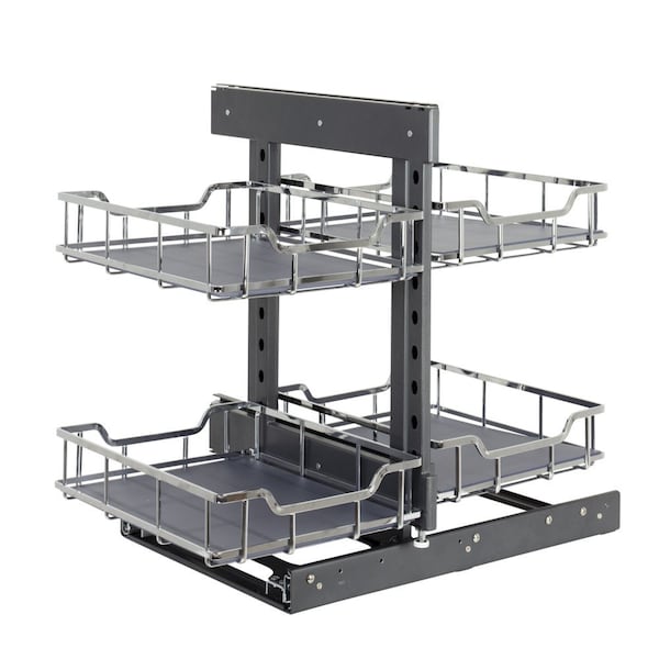 Bring style and functionality to your blind corner cabinet! Storage with Style Blind Corner Organizer maximizes space in blind corner cabinets while allowing the user full accessibility to the entire unit as all four baskets extend out of the cabinet for full access. This blind corner organizer is designed to fit most 48" full-height blind corner cabinets and features acrylic liners for a smooth shelf bottom that is also easy to clean. Extra clearance is built in to prevent interference with adjacent hardware when fully extended out of the cabinet. Soft-close ball-bearing slides and heavy duty materials making it durable, stable and stylish. The unit is easy to assemble and installs for either left or right-handed applications. Add an extra set of baskets to make a 3-tier shelf organizer. Polished Chrome finish.