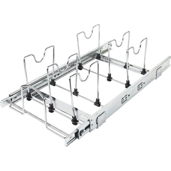 Add functionality to your cabinet with a lid pullout organizer. Designed for a 12" cabinet opening this organizer easily installs with just four screws to the bottom of the cabinet or fixed shelf. Holds seven lids.