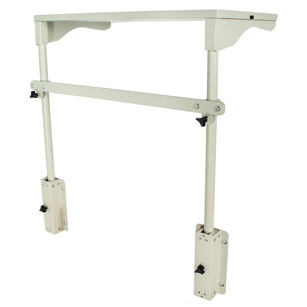 This anesthesia cart adjustable shelf provides additional cart storage and allows you to hang tilt bins, tape dispensers and other rail clip accessories at the height that you choose. More customizable than a traditional raised back rail system, this system allows you to move the position of your anesthesia cart adjustable shelf by simply loosening the knobs to slide the shelf and rail to your desired height and then tightening the knobs to secure them into the new position. This product comes in several variants: the standard MD30-ADJSHLFBAR1 variant includes one adjustable overhead shelf, one adjustable accessory hanger rail, the vertical rail supports, a rubber mat for each shelf, adjustment knobs and mounting hardware but other configurations are available as described below. This anesthesia cart adjustable shelf is made from heavy-duty steel with a heat sealed powder coat finish in the color sand.